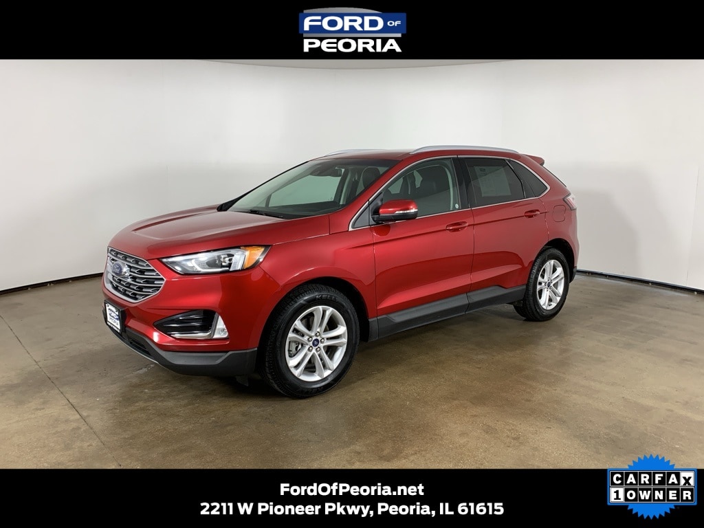 Rapid Red Tinted Clearcoat 2020 Ford Edge SEL FWD with Ebony ActiveX interior - available now at Ford of Peoria in Peoria, IL. Clean CARFAX, one-owner. This stylish midsize SUV offers a refined balance of performance, technology, and comfort - ideal for commuting, family trips, or daily errands.