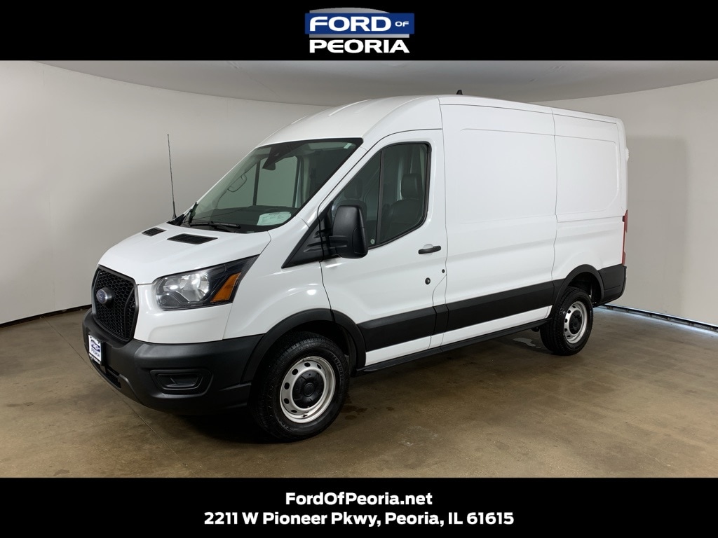 Oxford White 2023 Ford Transit-250 Medium Roof Cargo Van RWD with Dark Palazzo Gray vinyl interior - available now at Ford of Peoria in Peoria, IL. This hard-working, purpose-built van offers exceptional cargo space, proven performance, and built-in safety, making it the perfect solution for business and fleet use.