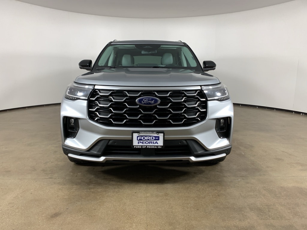 Iconic Silver Metallic 2025 Ford Explorer Platinum 4WD with Crystal Gray leather interior - available now at Ford of Peoria in Peoria, IL. This clean AutoCheck one-owner Explorer Platinum blends refined EcoBoost performance, advanced all-wheel-drive capability, and premium three-row comfort in a sophisticated midsize SUV. Designed for families, road trips, and daily commuting, this Explorer delivers upscale materials, cutting-edge technology, and confident capability in every drive.