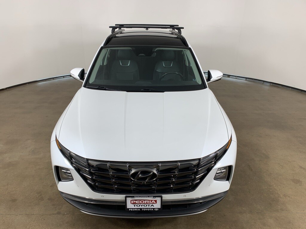 Quartz White 2022 Hyundai Tucson Limited AWD with Black leather-trimmed interior - available now at Peoria Toyota in Peoria, IL. This clean AutoCheck one-owner Tucson Limited delivers upscale comfort, advanced safety technology, and confident all-wheel-drive capability in a modern compact SUV designed for everyday driving and long-term ownership. Well equipped with premium features and intuitive technology, this Tucson offers a refined and practical driving experience.