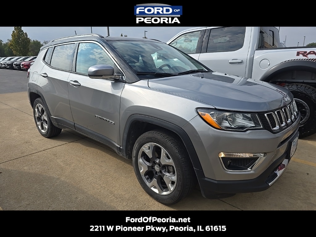 4WD, 3.73 Axle Ratio, 4-Wheel Disc Brakes, 6 Speakers, ABS brakes, Air Conditioning, Alloy wheels, AM/FM radio: SiriusXM, Anti-whiplash front head restraints, Apple CarPlay/Android Auto, Auto-dimming Rear-View mirror, Automatic temperature control, Brake assist, Bumpers: body-color, Compass, Delay-off headlights, Driver door bin, Driver vanity mirror, Dual front impact airbags, Dual front side impact airbags, Electronic Stability Control, Four wheel independent suspension, Front anti-roll bar, Front Bucket Seats, Front Center Armrest w/Storage, Front dual zone A/C, Front fog lights, Front reading lights, Fully automatic headlights, Heated door mirrors, Heated front seats, Heated steering wheel, Illuminated entry, Knee airbag, Leather Shift Knob, Leather Trimmed Bucket Seats, Low tire pressure warning, Occupant sensing airbag, Outside temperature display, Overhead airbag, Overhead console, Panic alarm, ParkView Rear Back-Up Camera, Passenger door bin, Passenger vanity mirror, Power door mirrors, Power driver seat, Power Front/Fixed Rear Full Sunroof, Power steering, Power windows, Premium Alpine Speaker System, Quick Order Package 2GG, Radio: Uconnect 4 w/8.4" Display, Rain sensing wipers, Rear anti-roll bar, Rear seat center armrest, Rear window defroster, Rear window wiper, Remote keyless entry, Roof rack: rails only, Security system, Speed control, Split folding rear seat, Spoiler, Steering wheel mounted audio controls, Sun and Sound Group, Tachometer, Telescoping steering wheel, Tilt steering wheel, Traction control, Trip computer, Turn signal indicator mirrors, Variably intermittent wipers, Wheels: 18" x 7.0" Polished/Gray Pockets Aluminum. Recent Arrival! 2021 Jeep Compass Limited Billet Silver Metallic Clearcoat