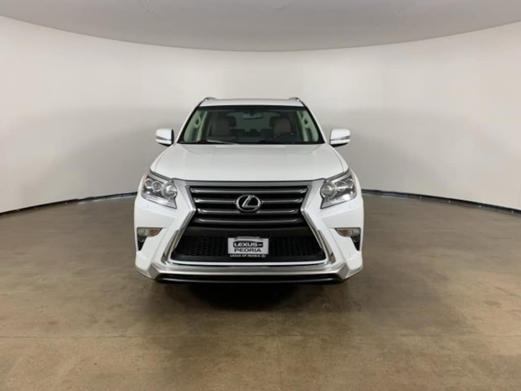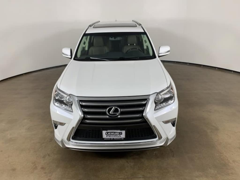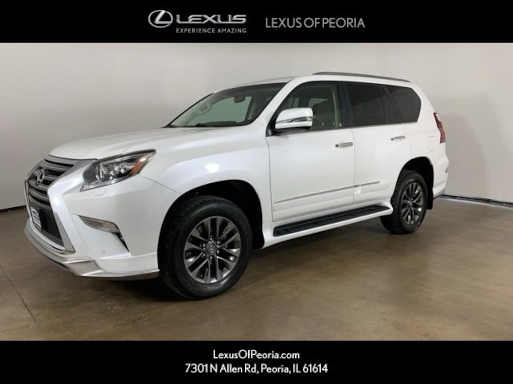 Starfire Pearl 2019 Lexus GX 460 with Sepia leather interior - available now at Lexus of Peoria in Peoria, IL. This clean AutoCheck one-owner GX 460 blends V8 strength, full-time 4WD capability, and classic Lexus refinement. Equipped with the Premium Package with Captains Chairs and the Sport Design Package, this GX includes Navigation, heated and ventilated front seats, heated second-row captains chairs, Mahogany wood trim, LED fog lamps, Intuitive Parking Assist, and Lexus Safety Connect. This GX delivers long-lasting durability, comfort, and true SUV versatility.