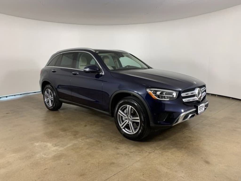 Lunar Blue Metallic 2022 Mercedes-Benz GLC 300 4MATIC with Silk Beige MB-Tex interior - available now at Lexus of Peoria in Peoria, IL. This AutoCheck one-owner clean history luxury SUV blends elegant styling, advanced technology, and confident all-wheel-drive performance, making it an excellent choice for drivers seeking both refinement and versatility.