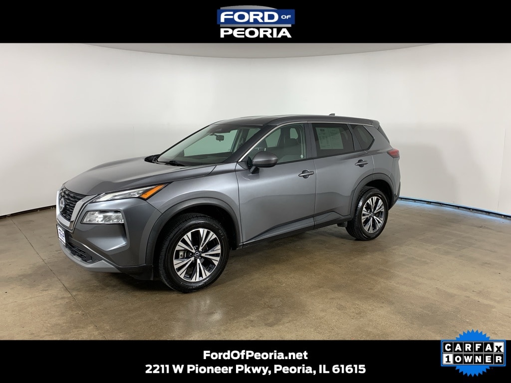 Gun Metallic 2023 Nissan Rogue SV AWD with Charcoal cloth interior - available now at Ford of Peoria in Peoria, IL. CARFAX one-owner. This versatile compact SUV blends excellent fuel efficiency, advanced safety technologies, and modern comfort features, making it an outstanding choice for both commuters and families.