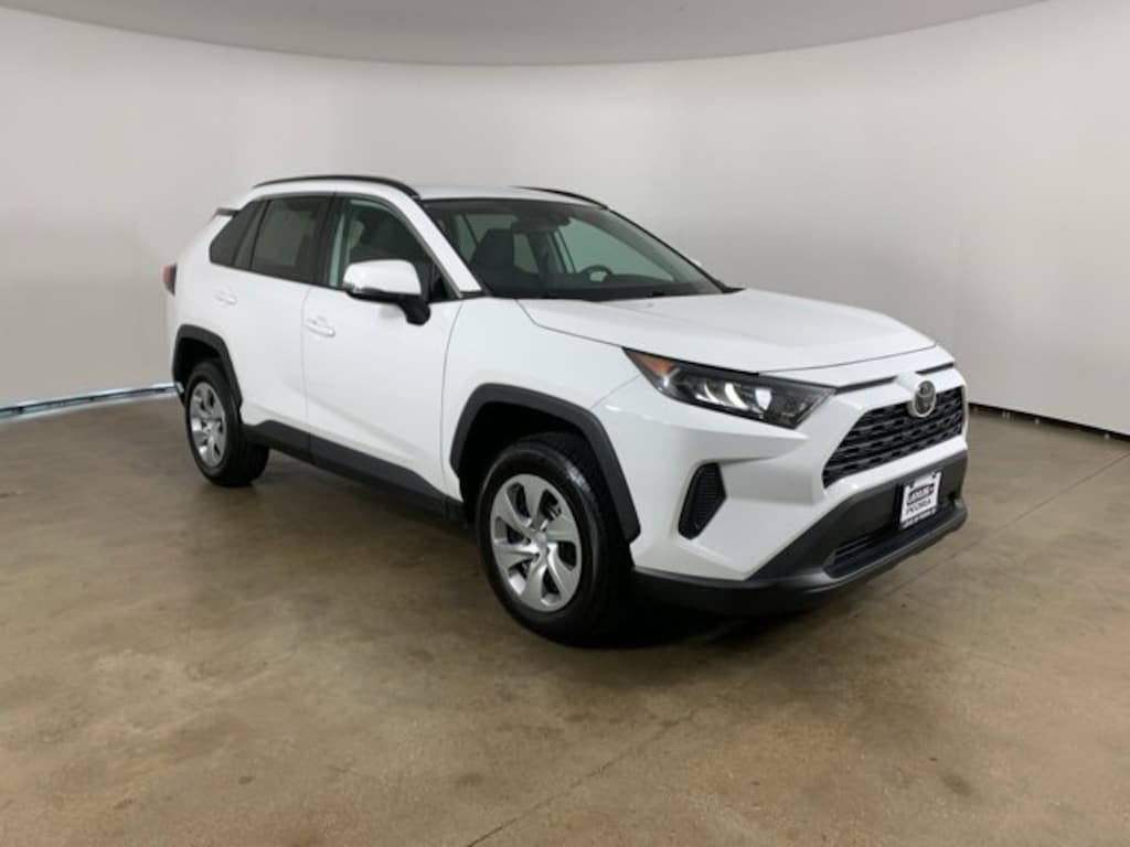 Super White 2021 Toyota RAV4 LE AWD with Black fabric interior - available now at Lexus of Peoria in Peoria, IL. This clean-history compact SUV blends rugged capability, advanced technology, and Toyotas renowned reliability. With efficient performance and a well-equipped interior, this RAV4 LE AWD delivers comfort, confidence, and value for every drive.